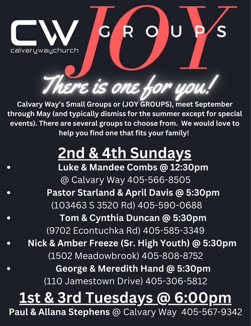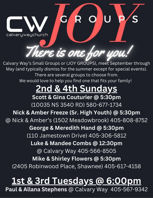 With JOY, Calvary Way Church hopes to further our mission to love one another to life through the Gospel of Jesus Christ.